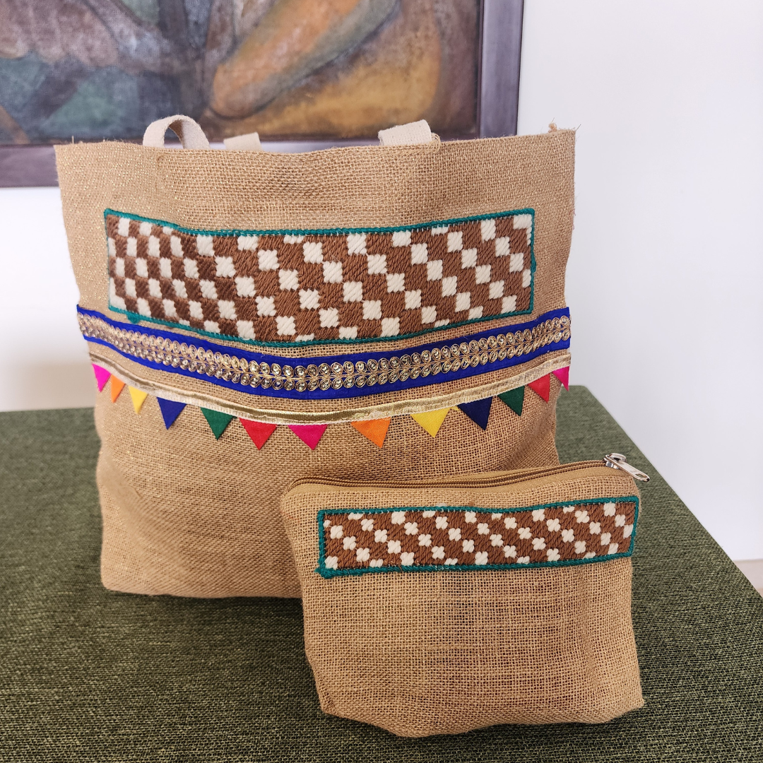 Carry your essentials in style with our durable and vibrant jute bag, designed for everyday use. Each bag comes with a convenient small pouch, making it perfect for shopping, work, or casual outings. Eco-friendly, sturdy, and stylish—your perfect daily companion!